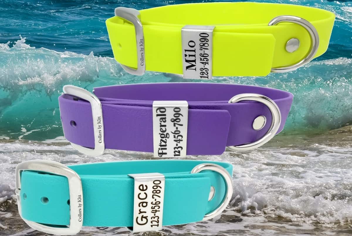 When you want a truly waterproof dog collar, you want Stainless Steel. It’s a waste to make a waterproof Biothane Collar and then use inexpensive plated hardware that will chip, tarnish and rust. Unlike brass, Stainless Steel does not turn green or discolor the material it comes in contact with.