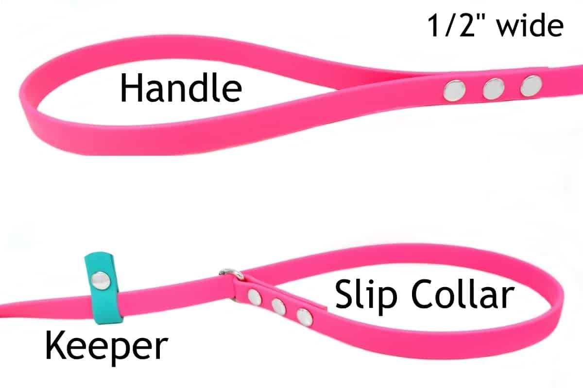 Because these are crafted from Beta Biothane & Stainless Steel, they are Durable, WaterProof & Odorproof. If you prefer 5/8″ wide, you can find them here: 5/8″ wide Slip Leads