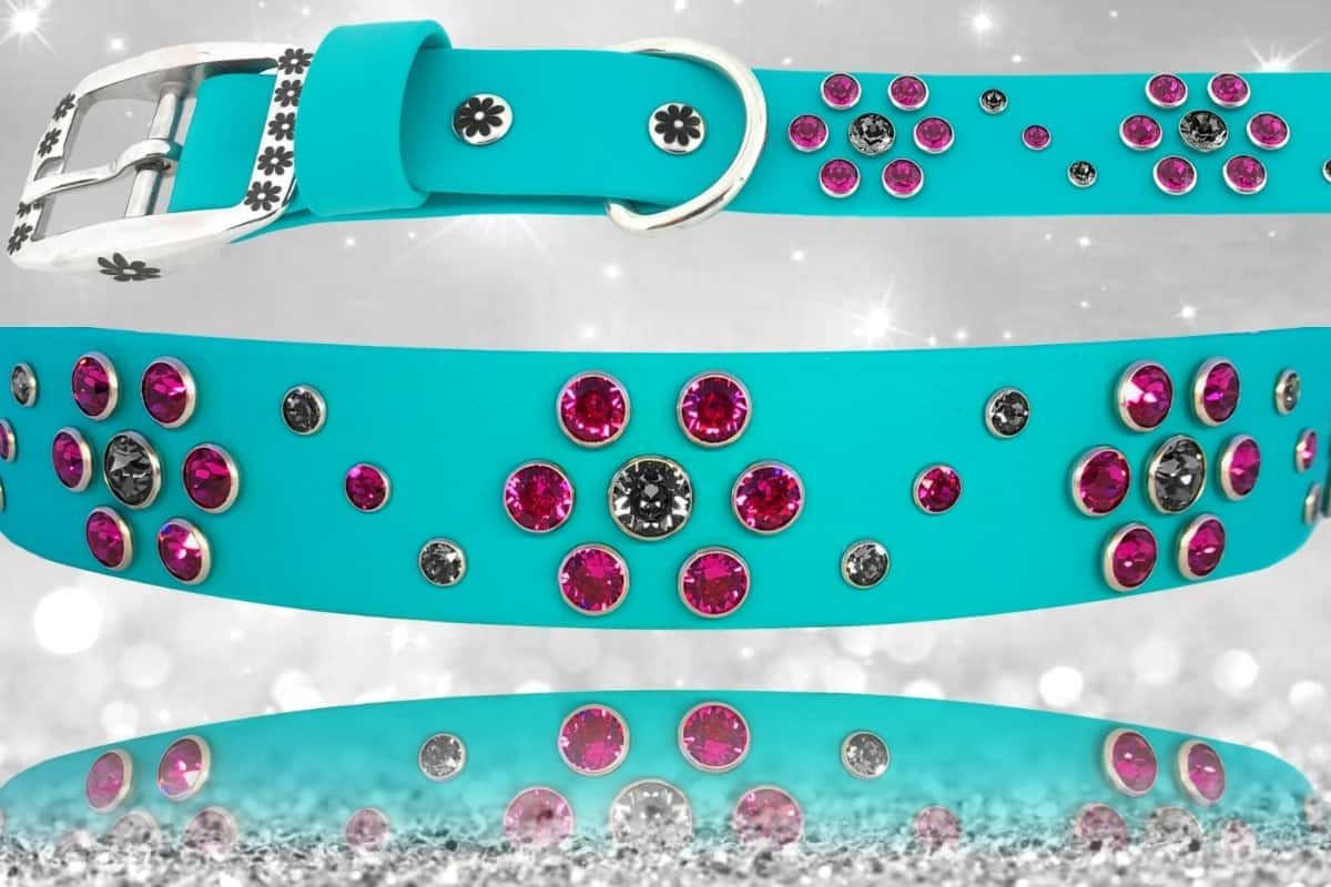 The incomparable sparkly twinkling of SwarovskiⓇ Crystals in a Dog Collar that is Waterproof, Durable, Secure, and Comfortable.