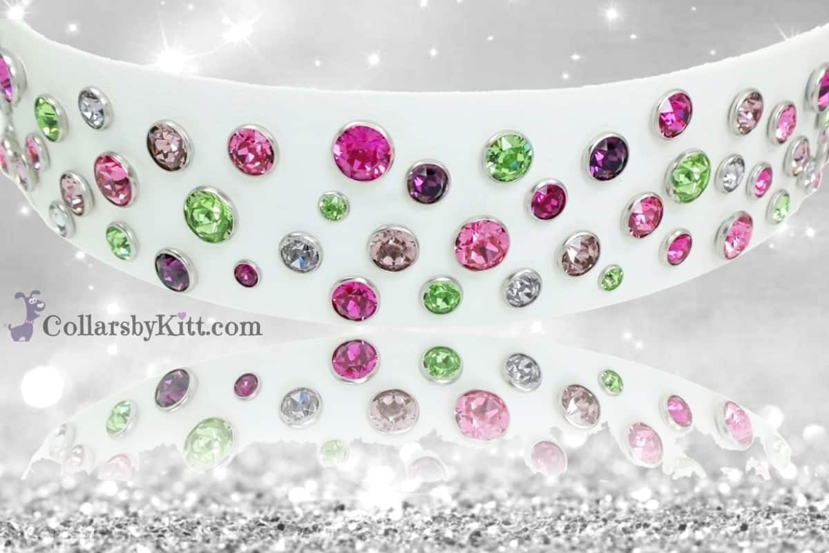 The incomparable sparkly twinkling of SwarovskiⓇ Crystals in a 1 1/2″ wide Dog Collar that is Waterproof, Durable, Secure, and Comfortable.