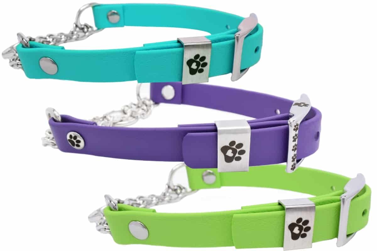 The reason I will use these on my dogs and won’t use choke collars is that there is no chain cutting into the very vulnerable area under the neck. The chain is only on top where the leash connects.